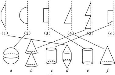 如图所示的图形绕轴旋转一周,便能形成a~f中的某个几何体,请你用线把它们连起来.