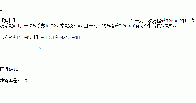 若一元二次方程x2﹣2x+a=0有两个相等的实数根,则a的值是_____.