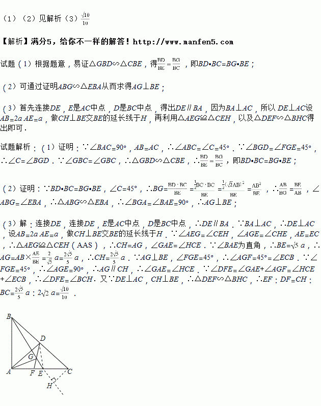 已知:如图,在直角三角形ABC中,∠BAC=90°,AB=AC,D为BC的中点,E为AC上一点,点G在BE上,连接DG并延长交AE于F,若∠FGE=45°.