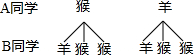 (2)同学A和同学B分别从自己的卡片中随机抽取一张,请用画树状图(或列表)的方法求抽取的两张卡片上的图案均为猴的概率.