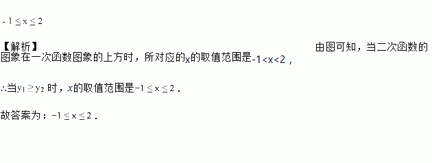 如图是二次函数和一次函数的图象,当时,x的取值范围是______.