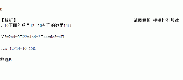 填在下面各正方形中的四个数之间都有相同的规律,根据这种规律,m的值应是( )
