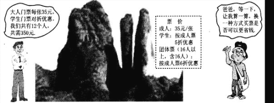 在“十·一”黄金周期间,小明、小亮等同学随家人一同到净月潭游玩.下图是购买门票时,小明与他爸爸的对话: