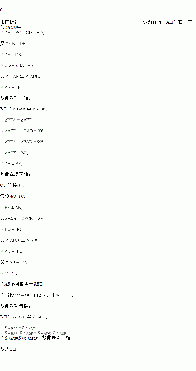 如图,在正方形ABCD中,E,F分别是边CD,AD上的点,且CE=DF.AE与BF相交于点O,则下列结论错误的是( )