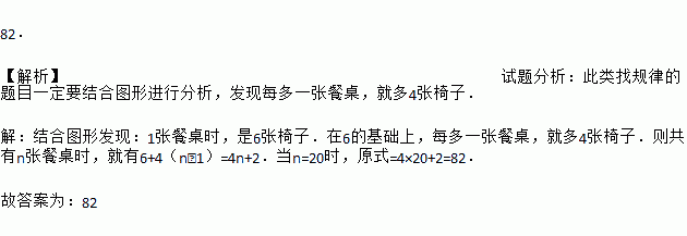下图(1)表示1张餐桌和6张椅子(每个小半圆代表1张椅子),若按这种方式摆放20张餐桌需要的椅子张数是 .