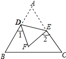 ∵将纸片△ABC沿DE折叠,点A落在点F处,