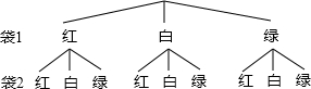 | 袋1颜色结果袋2 | 红 | 白 | 绿 |