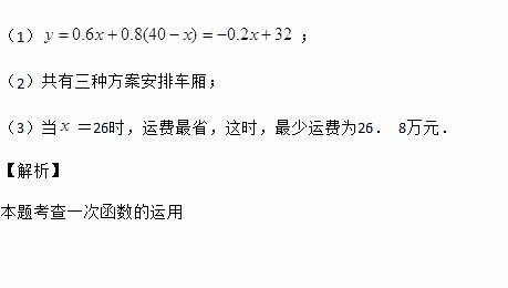 现计划把甲种货物1240吨和乙种货物880吨用一列货车运往某地,已知这列货车挂有A、B两种不同规格的货车车厢共40节,使用A型车厢每节费用为6000元,使用B型车厢每节费用为8000元。