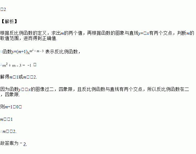 如果函数y=(m+1)x表示反比例函数,且这个函数的图象与直线y=-x有两个交点,则m的值为_________.