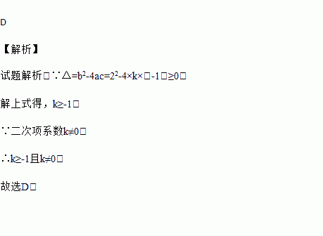 A. k>-1 B. k≥-1 C. k>-1且k≠0 D. k≥-1且k≠0