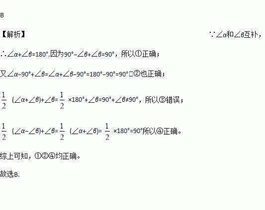 如果 和 互补,且 ,则下列表示 的余角的式子中正确的有( )