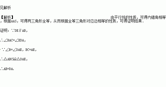 已知,D是AC上一点,BC=AE.DE∥AB,∠B=∠DAE.