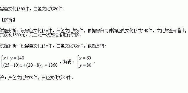 假设文化衫全部售出,共获利1860元,求黑白两种文化衫各多少件?
