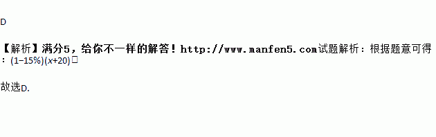 A. 15%x+20 B. (1﹣15%)x+20 C. 15%(x+20) D. (1﹣15%)(x+20)