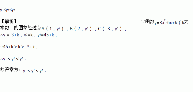 已知函数 (k为常数)的图象经过点A(1,y1), B(2,y2),C(-3,y3),则y1, y2,y3从小到大排列顺序为_______________