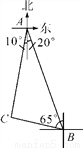 一渔船在海岛A南偏东20°方向的B处遇险,测得海岛A与B的距离为20(+1)海里,渔船将险情报告给位于A处的救援船后,沿北偏西65°方向向海岛C靠近,同时,从A处出发的救援船沿南偏西10°方向匀速航行,20分钟后,救援船在海岛C处恰好追上渔船,那么救援船航行的速度为________海里/分.