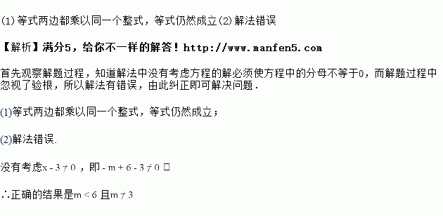 (2)上述解法是否有误?若有错误请说明错误的原因,并写出正确解答; 若没有错误请说明其余每一步解法的依据.