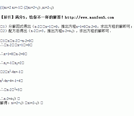 解方程(1) (2) x2-4x+1=0
