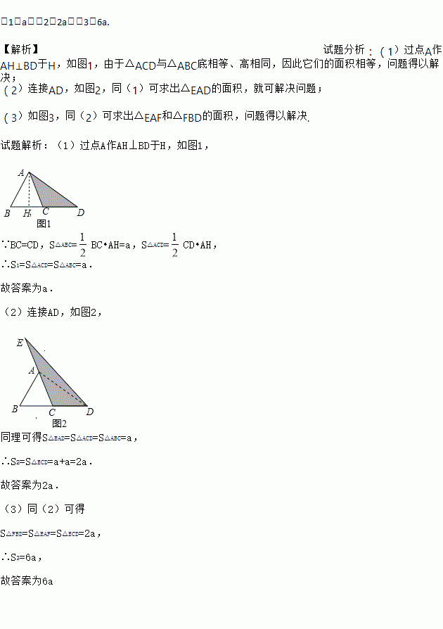 (1)如图①,延长△ABC的边BC到点D,使CD=BC,连接DA,若△ACD的面积为S1,则S1=________(用含a的式子表示);
