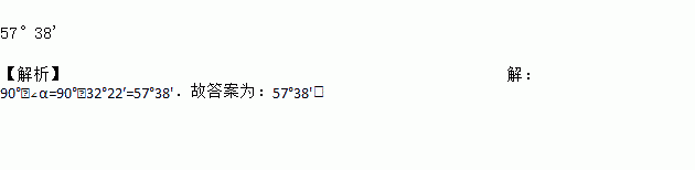 若∠α=32°22′,则∠α的余角的度数为_____.