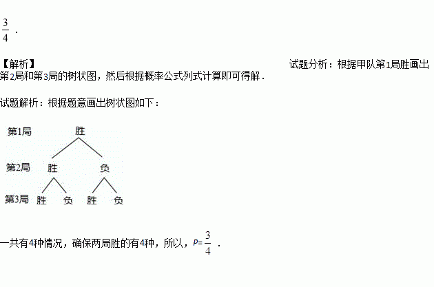 在2017年“KFC”篮球赛进校园活动中,某校甲、乙两队进行决赛,比赛规则规定:两队之间进行3局比赛,3局比赛必须全部打完,只要赢满2局的队为获胜队,假如甲、乙两队之间每局比赛输赢的机会相同,且乙队已经赢得了第1局比赛,那么甲队获胜的概率是多少?(请用“画树状图”或“列表”等方法写出分析过程)