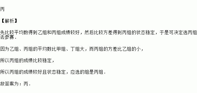 某校准备从甲、乙、丙、丁四个科创小组中选出一组,参加区青少年科技创新大赛,表格反映的是各组平时成绩的平均数