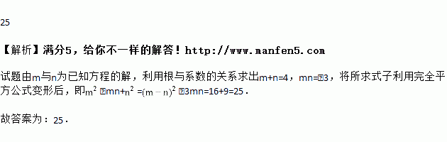 已知一元二次方程x2-4x-3=0的两根为m,n,则