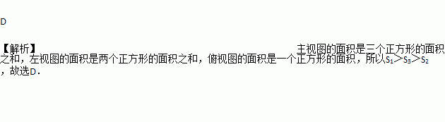 如图是三个大小不等的正方体拼成的几何体,其中两个较小正方体的棱长之和等于大正方体的棱长.该几何体的主视图、俯视图和左视图的面积分别是S1、S2、S3,则S1、S2、S3的大小关系是( )