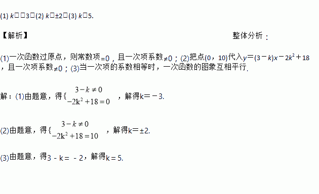已知一次函数y=(3-k)x-2k2+18,分别求k为何值时,它的图象满足下列要求: