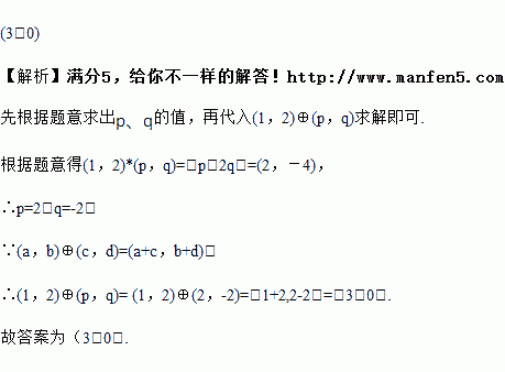 对于任意实数对(a,b)和(c,d),规定运算“*”为(a,b)*(c,d)=(ac,bd);运算“⊕”为(a,b)⊕(c,d)=(a+c,b+d).若(1,2)*(p,q)=(2,-4),则(1,2)⊕(p,q)=________.