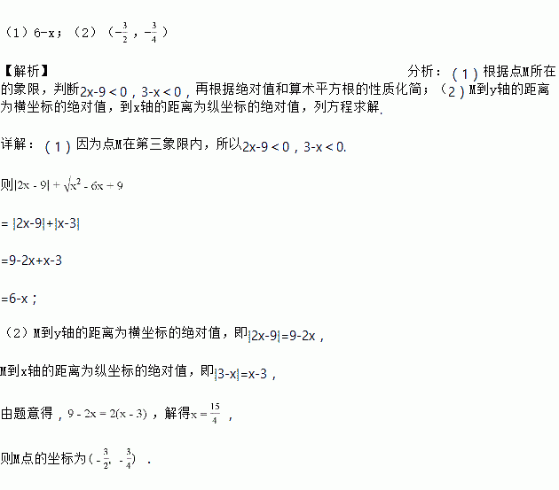(2)点M到y轴的距离是到x轴的2倍,请求出M点坐标.