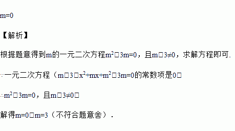 若一元二次方程(m﹣3)x2+mx+m2﹣3m=0的常数项是0,求m的值.