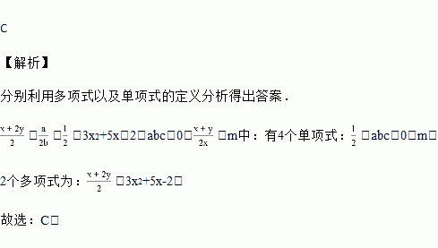 A. 有5个单项式,1个多项式 B. 有3个单项式,2个多项式