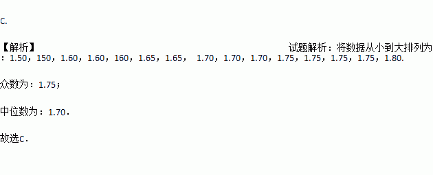 在一次中学生田径运动会上,参加男子跳高的15名运动员的成绩如下表所示.