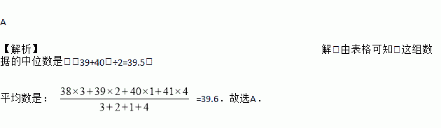 A. 39.5,39.6 B. 40,41 C. 41,40 D. 39,41