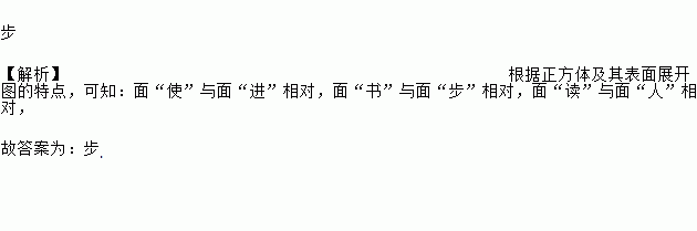 如图所示是小聪制作的一个正方体模型的展开图,把“读书使人进步”六个字分别粘贴在六个面上,那么在正方体模型中与“书”相对的面上的字是________.
