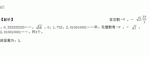 在实数,-,,0.333333333……, ,0,1.732,2.010010001……中,无理数有__________个.