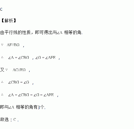 如图,AF//BG,AC//EG,那么图中与∠A相等的角有 个.