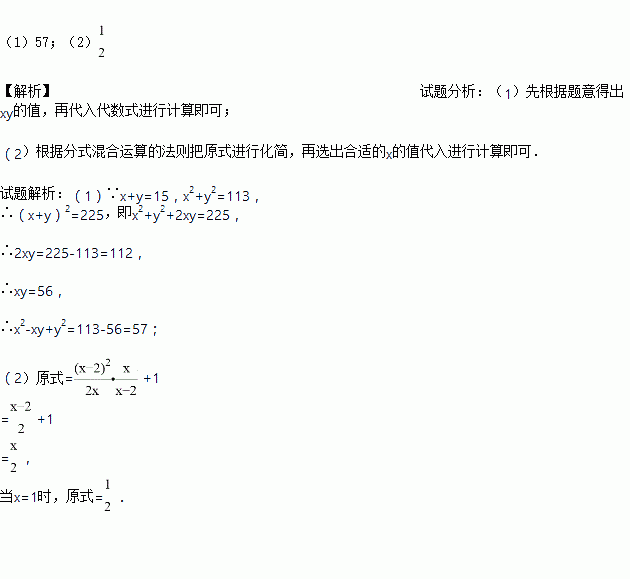 (1)已知x+y=15,x2+y2 =113,求x2-xy +y2 的值。