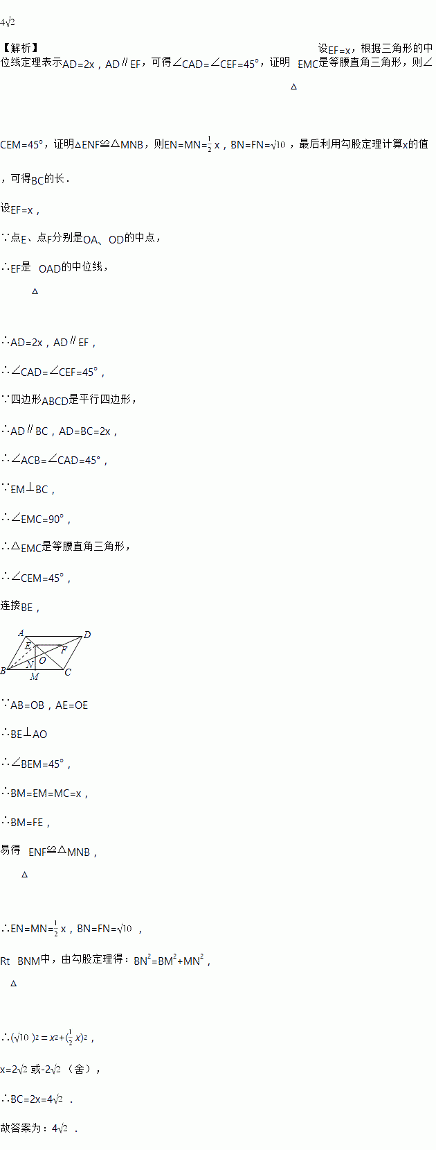 如图,在平行四边形ABCD中,对角线AC、BD相交于点O,AB=OB,点E、点F分别是OA、OD的中点,连接EF,∠CEF=45°,EM⊥BC于点M,EM交BD于点N,FN=