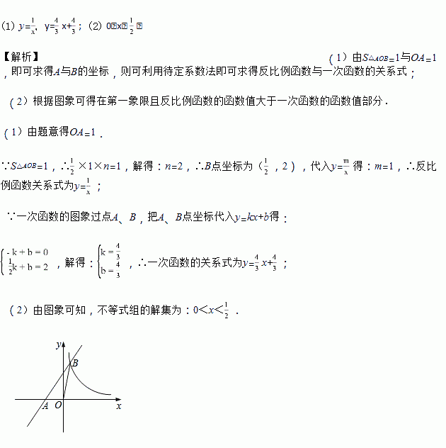 (1)求反比例函数与一次函数的关系式;