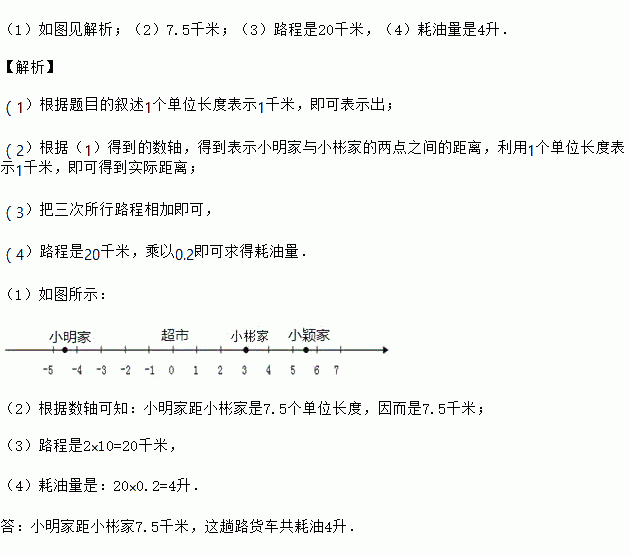 一辆货车从超市出发,向东走了3千米到达小彬家,继续走2.5千米到达小颖家,然后向西走了10千米到达小明家,最后回到超市.