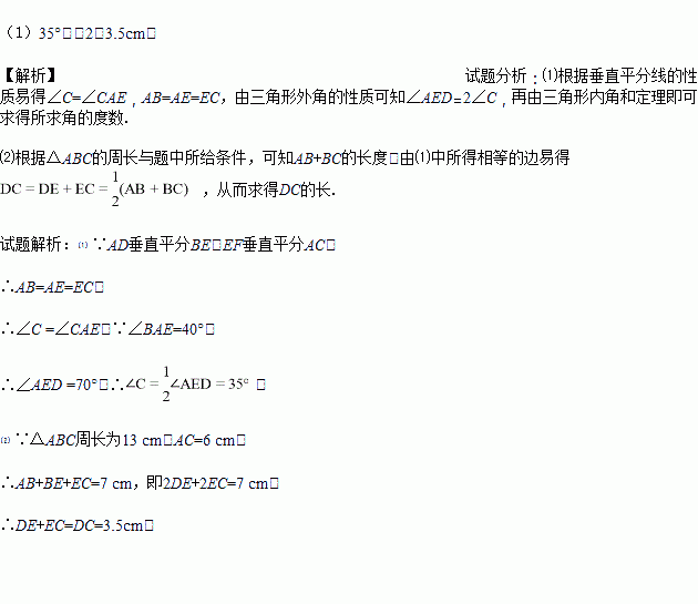 ⑵若△ABC周长13cm,AC=6cm,求DC长.