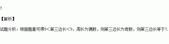 如果三角形的两边分别为2和7,且它的周长为偶数,那么第三边的长等于 .