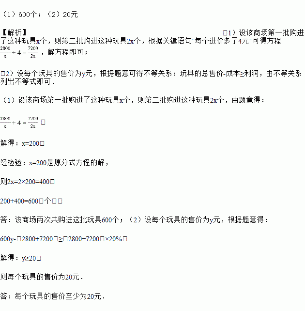 (1)该商场两次共购进这批玩具多少个?