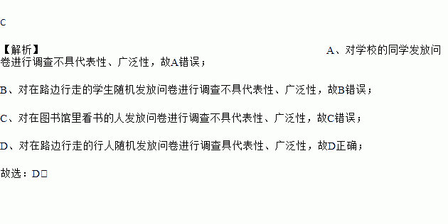 D. 对在图书馆里看书的人发放问卷进行调查