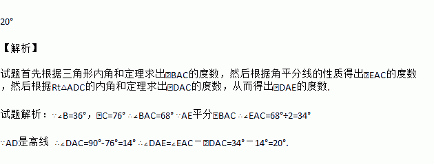 如图所示,AD,AE是三角形ABC的高和角平分线,∠B=36°,∠C=76°,