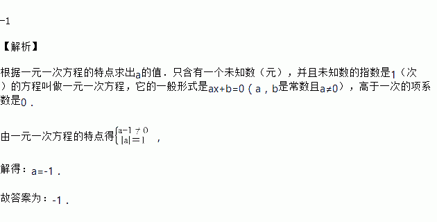 若(a﹣1)x|a|+3=6是关于x的一元一次方程,则a=________.
