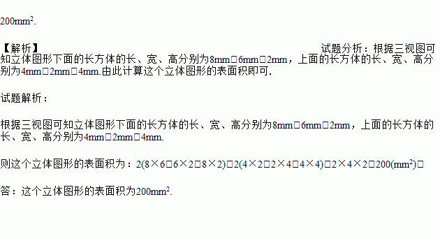 如图是由两个长方体组合而成的一个立体图形的三视图,根据图中所标尺寸(单位:mm),求这个立体图形的表面积.