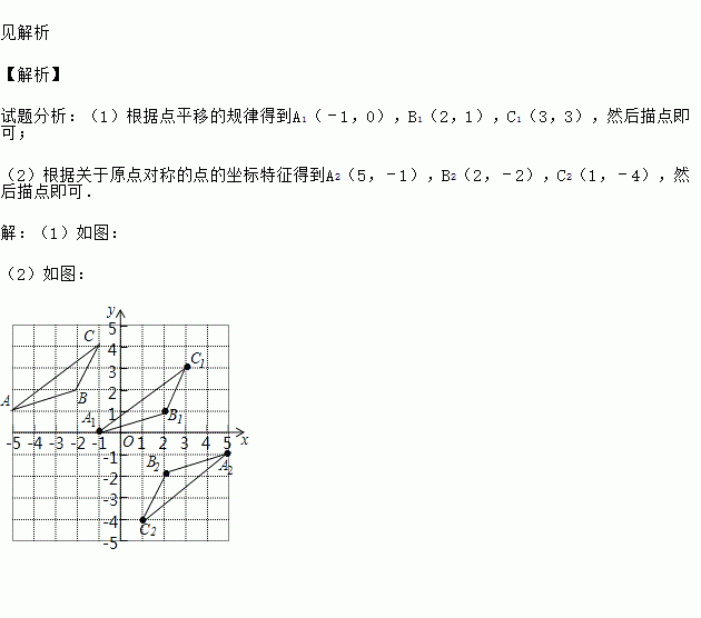(2)△A2B2C2与△ABC关于原点O成中心对称,画出△A2B2C2.